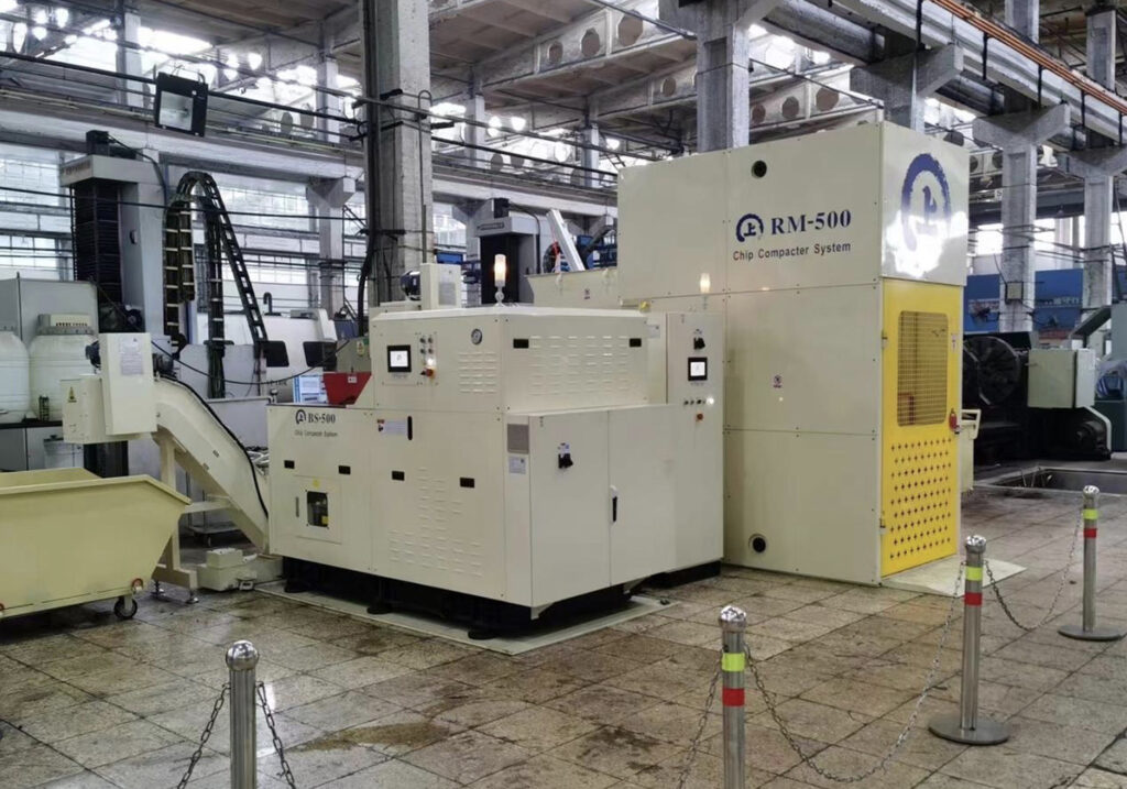 台車反転装置ー破砕機ー圧縮機ー切削油回収